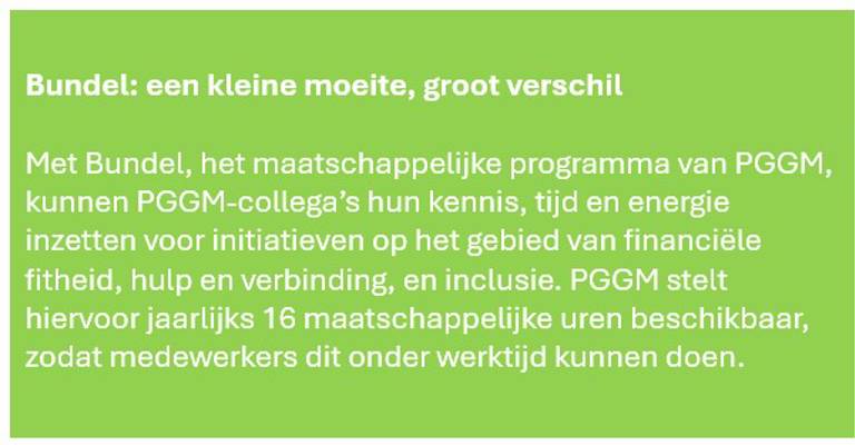 Daniëlle Bourgondiën, programmamanager Data Mesh Transformatie bij PGGM Vermogensbeheer, zet zich via Bundel in voor jongeren die opgroeien in een omgeving met minder kansen. Samen met JINC helpt ze hen met sollicitatietrainingen, workshops over netwerken op middelbare scholen en digitale vaardigheidslessen op basisscholen.