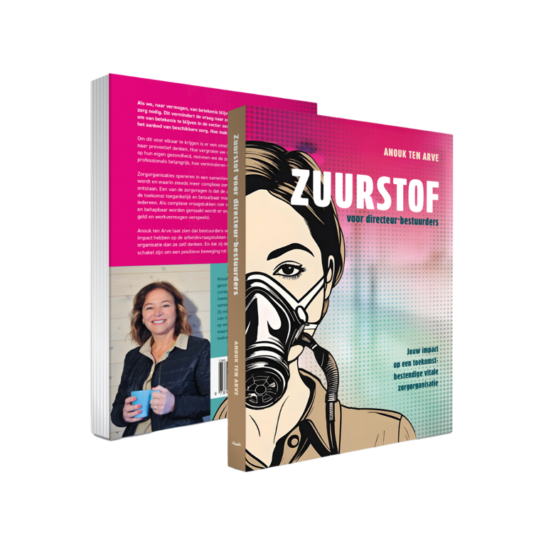Het is tijd voor een manier van werken die uitval voorkomt en gezond is voor iedereen, ook voor mensen met een chronische aandoening of een complexe thuissituatie. In mijn boek 'Zuurstof voor directeur-bestuurders' combineer ik resultaten uit (wetenschappelijk) onderzoek, de visie van vooraanstaande bestuurders en persoonlijke ervaring in de samenwerking met zorgprofessionals. Het boek laat zien hoe je werkt aan een vitale organisatie waarin kwaliteit van zorg, beheersbare kosten en werkplezier elkaar versterken.