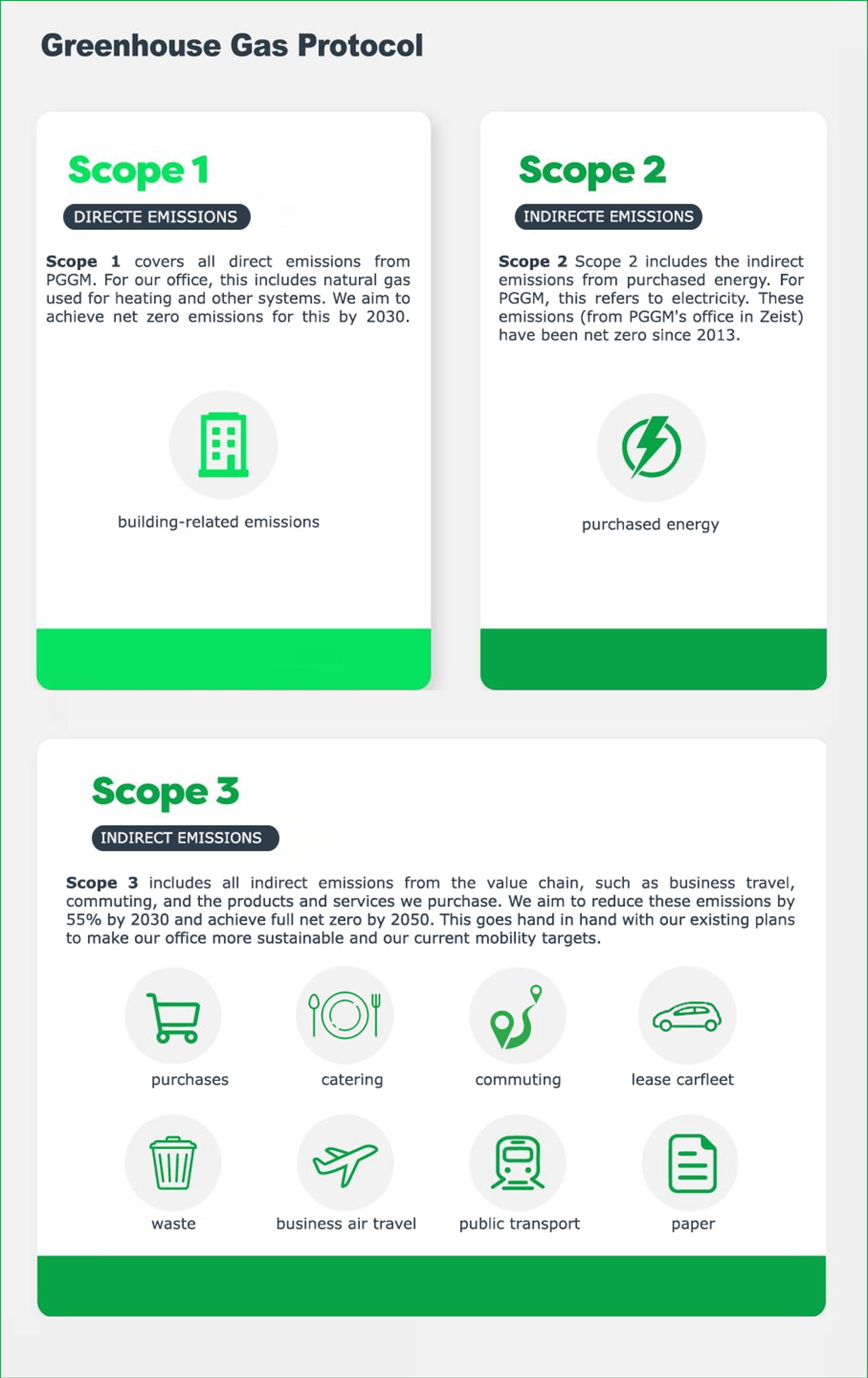 We take this responsibility seriously. We help our clients play their part in building a more sustainable future while also doing everything we can to reduce our own impact as an organisation. PGGM has set a clear ambition: to achieve net zero carbon emissions in our operations by 2050. Our net zero policy helps us take clear, measurable steps towards that goal.