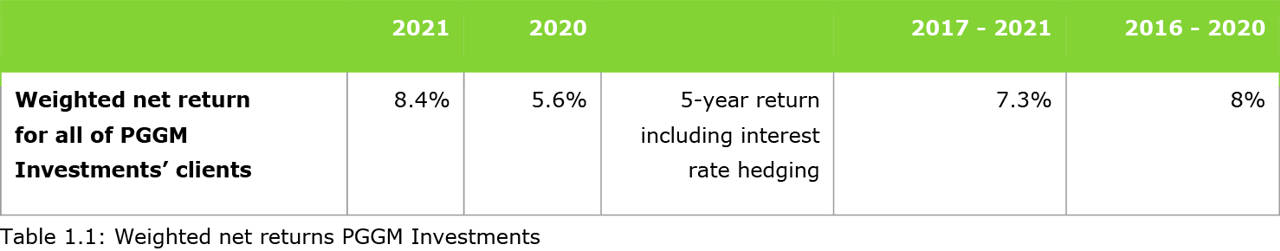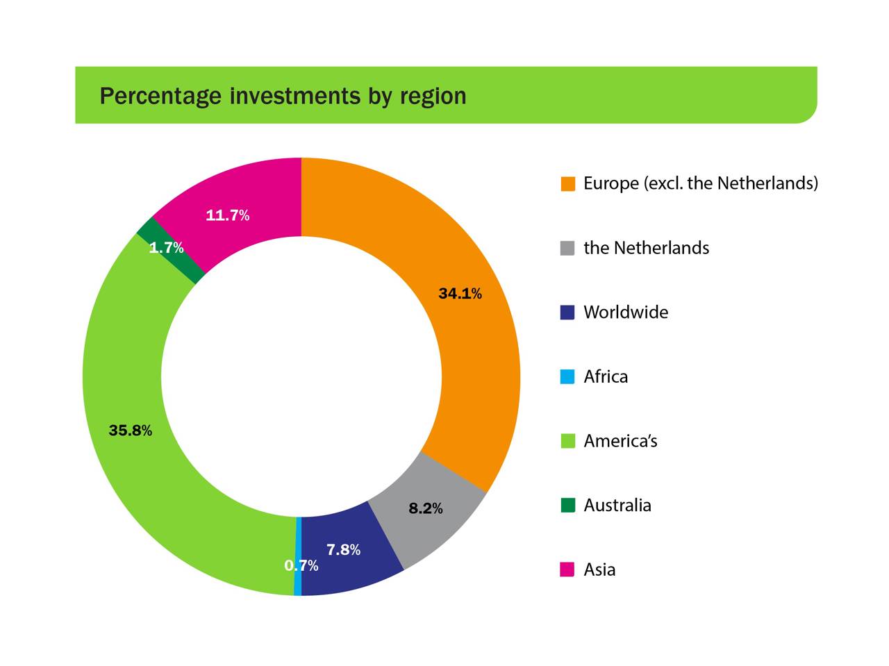 In table 1.1 the annualized returns of PGGM Investments funds after deduction of external management fees and performance fees are presented. The spread of investments by region is shown in the diagram below.