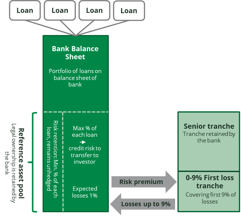 This freed up capital can then be recycled in order to provide additional lending to real economy clients ranging from individuals to SMEs and large corporates. In addition, by reducing the risk on a bank’s balance sheet and sharing that risk with investors outside of the banking system, CRS increases resilience of banks and thereby contributes to a more sustainable financial system. Finally, the scrutiny associated with a thorough due diligence on a bank’s lending processes, conducted by investors who have reviewed many of the world’s leading banks, can provide a valuable outside perspective on the quality of a bank’s processes and where improvements can be made.