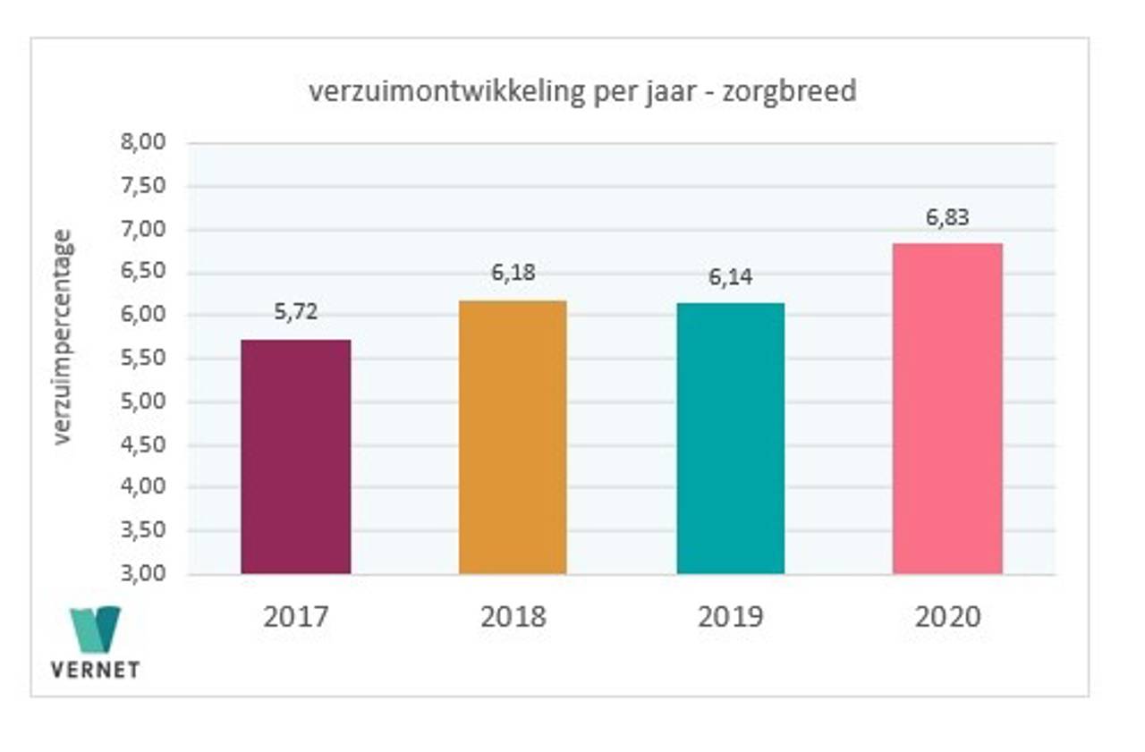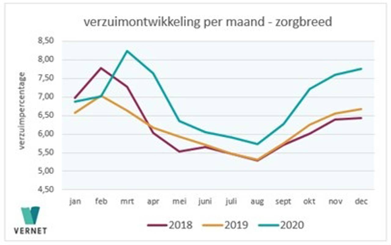 Vernet ziet dat het verzuimpercentage relatief snel stijgt. Op www.vernet.nl staat een volledige analyse van de verzuimcijfers over 2020.