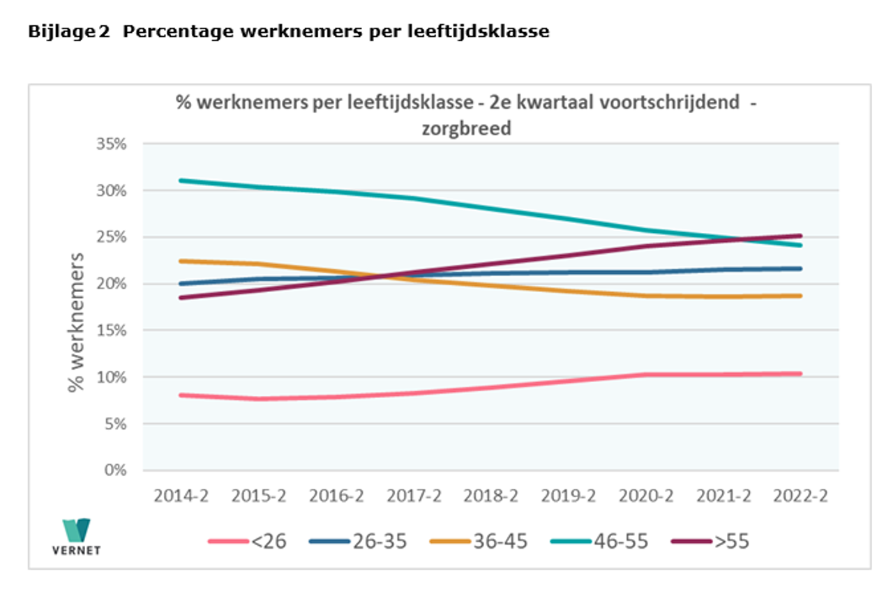 Onderzoeksbureau Vernet, dochteronderneming van pensioenuitvoeringsorganisatie PGGM, ziet dat in absolute zin het verzuimpercentage onder ouderen nog altijd het hoogste blijft. De opvallende stijging onder jongeren baart het bedrijf echter zorgen, ook omdat uit de cijfers blijkt dat het verzuim in de categorie 26-35 jaar eveneens sterk gestegen is. “Als we zien dat het verzuim onder jongeren zo snel stijgt, dan is dat een heel belangrijk signaal voor de aanpak van het toch al grote arbeidsmarktvraagstuk van de zorgsector in de toekomst”, stelt Danijela Budimir, directeur bedrijfsvoering van Vernet. Zie bijlage 1.
