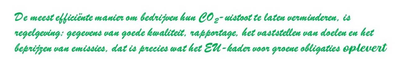 'De meest efficiënte manier om bedrijven hun CO2-uitstoot te laten verminderen, is regelgeving: data van goede kwaliteit, rapportage, doelen stellen en het beprijzen van uitstoot. Het EU-kader voor groene obligaties voorziet in al deze vereisten, dus het helpt als een bedrijf als Cemex een betrouwbaar kader ontwikkelt, bij voorkeur in de vorm van de EU-taxonomie. De specifieke EU-taxonomievereisten voor de productie van cement zijn heel gedetailleerd en daarom van nut voor zowel obligatieuitgevers als beleggers (Manufacture of cement). In Europa hebben we koolstofbeprijzingen en een push van de overheid richting cementproducenten - en elk ander bedrijf met een hoge CO2-uitstoot - om de CO2-uitstoot te verminderen. Tegelijkertijd is er veel vraag naar groenere producten, omdat iedereen zijn CO2-uitstoot moet verminderen. Cemex produceert 'groen' cement; een type cement dat wordt geproduceerd met aanzienlijk minder CO2-uitstoot in vergelijking met andere soorten cement. Dus zelfs als de prijs hoger is, verkoopt het product nog steeds. Dit is puur het gevolg van strenge regelgeving, koolstofbeprijzing en het emissiehandelssysteem dat we in de EU hebben.'