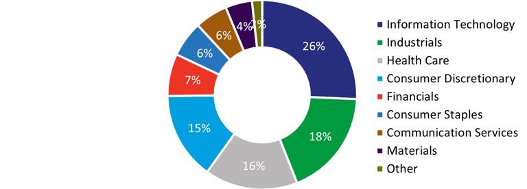 While the private equity portfolio is well diversified, the majority of investments are in developed countries, primarily the US and Western Europe, with a focus on buyout investments. The underlying investments in the portfolio are broadly diversified across sectors, with particularly significant exposure to Information Technology, Industrials, Consumer Discretionary, Health Care and Financials. Note, however, that we are in principle sector agnostic.