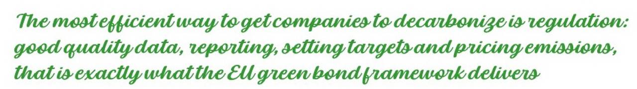 ‘The most efficient way to get companies to decarbonize is regulation: good quality data, reporting, setting targets and pricing emissions. The EU green bond framework takes care of all the requirements, so it helps if a company like Cemex develops a credible framework, preferably along the lines of the EU Taxonomy. The specific EU Taxonomy requirements for manufacturing cement are very detailed and therefore of use to both issuers and investors (Manufacture of cement). In Europe we have carbon pricing and a push from the government for cement producers - or anybody with high CO2 emissions - to decarbonize. This means that there is a business case to invest, as that of a cement producer who develops ways to decarbonize the production process. At the same time there is a lot of demand for greener products, because everyone needs to reduce their CO2 emissions. Cemex produces ‘green’ cement; a type of cement that was produced with significantly less CO2 emissions compared to other types of cement. So even if the price is higher, the product still sells. This is purely the result of strict regulation, carbon pricing scheme and emissions trading scheme that we have in the EU.’